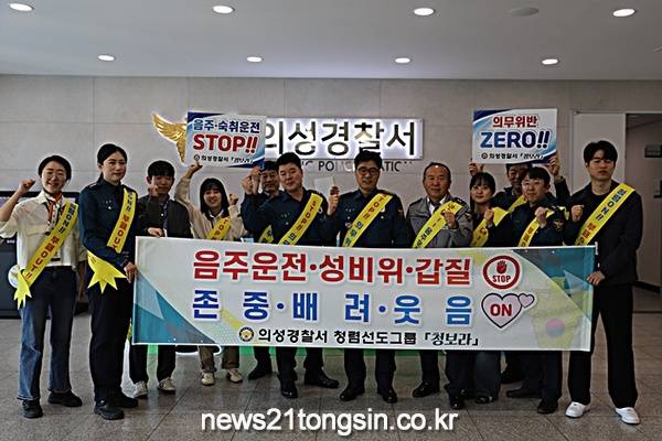 의성경찰서(서장 안양수)는 지난 11일 경찰서장과 청렴선도그룹 ‘청보라’ 회원 10명이 본서 각 사무실을 일일이 방문하며 음주운전 근절 캠페인을 펼쳤다.