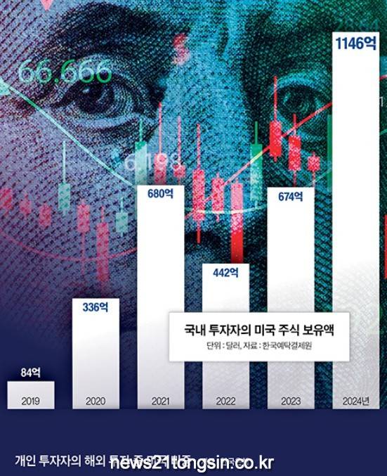 이런 흐름은 올해 들어서도 이어지고 있다. 한국예탁결제원에 따르면 미국 증시가 약세로 돌아선 올해 1분기 국내 투자자의 미 증시 순매수액은 109억2715만 달러(약 16조원)에 달했다. 이는 한국예탁결제원이 해당 통계를 집계하기 시작한 2011년 이후 최고치다. 특히 트럼프발(發) 관세전쟁 여파로 미국 증시가 급락세를 보였던 지난달 순매수액은 38억7327만 달러(약 5조6991억원)로, 월간 기준 역대 3위를 기록했다. 이 때문에 시장에서는 ‘얼죽미’(얼어 죽어도 미국)이라는 말까지 나온다.