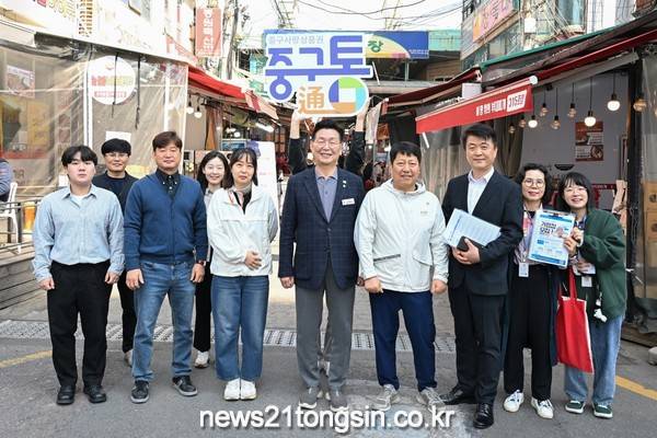 김제선 중구청장은 지난 11일 취임 1주년 첫 민선행보로 태평시장을 찾아 2025년 상반기 출시 예정인 중구사랑상품권 ‘중구통(通)’의 가맹점 모집에 나섰다. ‘중구통(通)’은 중구 내 자금의 순환 구조를 통해 자본의 역외 유출을 최소화하고, 소상공인과 전통시장 등 지역공동체와 함께하는 건강한 지역순환경제 조성을 목표로 추진하고 있다.
