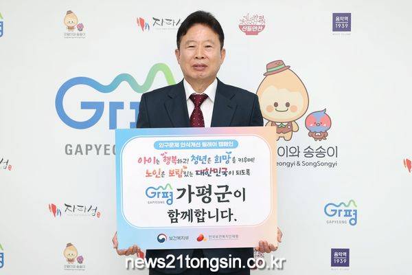 ▲ 사진=가평군가평군(군수 서태원)은 14일 인구문제 인식개선을 위한 ‘인구위기 대응 릴레이 캠페인’에 참여했다고 밝혔다. 이번 캠페인은 신계용 과천시장의 지목을 받아 진행한 것이다.