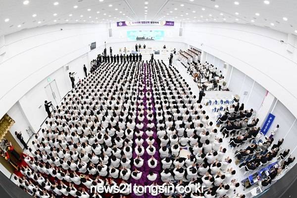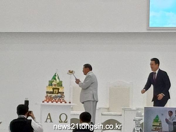 봉헌예배에 앞서 성도들이 준비한 여러 공연과 테이프 커팅식도 진행됐다. 특별히 봉헌을 축하하며 요한계시록의 내용을 형상화한 케이크 점화식도 진행돼 눈길을 끌었다.