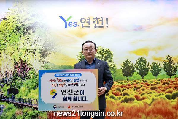 ▲ 사진=연천군김덕현 연천군수는 14일 군청에서 인구감소와 고령화 문제에 대한 사회적 인식 제고를 위해 ‘인구문제 인식 개선을 위한 릴레이 캠페인’에 참여했다.