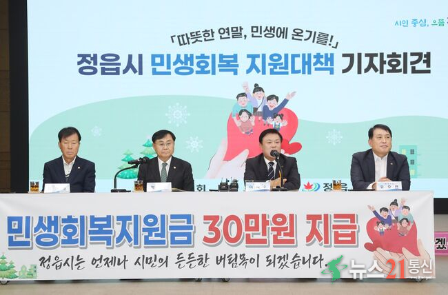 전북특별자치도 정읍시와 정읍시의회가 장기화된 경기 침체로 어려움을 겪는 시민들의 생활 안정을 위해 다시 한번 뜻을 모았다. 이학수 정읍시장과 박일 정읍시의회 의장은 15일 시청 대회의실에서 기자회견을 열고, 모든 시민에게 1인당 30만원의 '민생회복지원금'을 지급한다고 밝혔다. 이번 지원금 지급 결정은 고물가와 난방비 부...