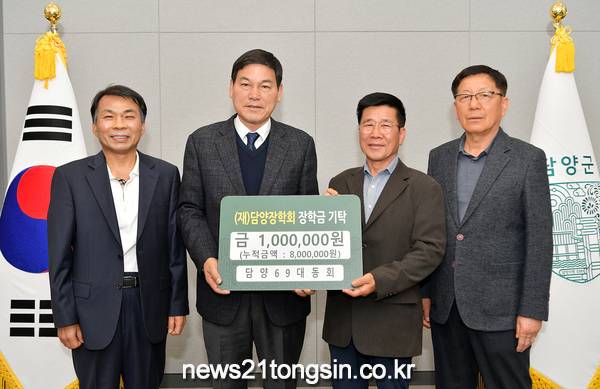 담양군은 담양69대동회(회장 송기섭)가 16일 100만 원의 장학금을 (재)담양장학회에 기탁했다고 밝혔다.