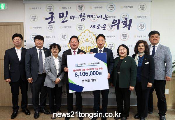 이번 성금은 지난 7일부터 11일까지 진행된 가운데, 가평군청과 군의회 소속 전 직원들이 자발적으로 참여해 정성을 모은 것이다. 모금된 성금은 산불 피해 지역 주민들의 생계 지원과 일상 복귀를 위한 복구 활동에 사용될 계획이다.