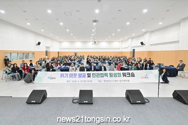 ▲ 사진=포천시포천시(시장 백영현)는 지난 18일 포천비즈니스센터 컨벤션홀에서 명예사회복지공무원과 읍면동 지역사회보장협의체 위원을 대상으로 위기이웃 발굴 및 민관협력 활성화 공동연수(워크숍)를 개최했다.