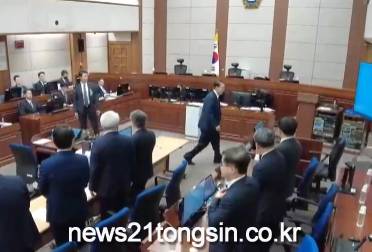 ▲ 사진=kbs뉴스 영상 캡쳐재판 시작 3분 전, 붉은색 넥타이를 한 윤 전 대통령이 법정에 들어선다.