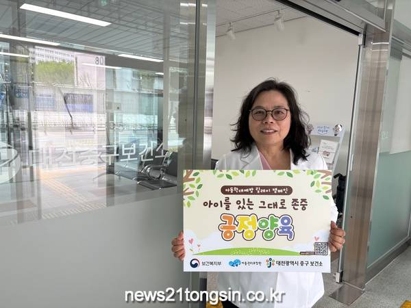 대전 중구보건소(소장 이경숙)는 지난 21일 아동에 대한 존중과 긍정적인 양육 환경 조성의 중요성을 알리기 위해 보건복지부와 아동권리보장원이 주관하는 ‘아이를 있는 그대로 존중, 긍정양육’ 아동학대 예방 릴레이 캠페인에 동참했다고 밝혔다.