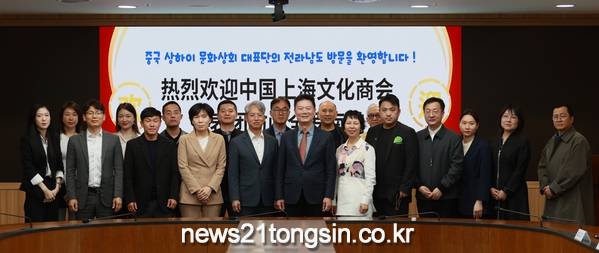 전라남도는 중국 상하이 문화상회 대표단(양전화 회장 등 19명)이 23일까지 2박3일 일정으로 전남도 문화산업 주요 기관과 단체를 방문해 두 지역 간 문화교류 및 문화산업 협력 방안을 모색했다고 밝혔다.