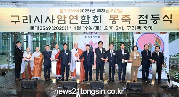 ▲ 사진=구리시구리시(시장 백경현)는 2025년 4월 19일 8호선 구리역 환승센터(구리역 공원)에서 불기 2569년 부처님오신날 기념 봉축 기념탑 점등식을 성황리에 개최했다.