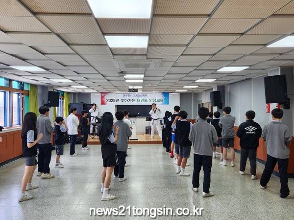 ▲ 사진=동두천시동두천시(시장 박형덕)는 2025년 교육발전특구 사업의 일환으로 ‘학교로 찾아가는 태권도 인성교육’을 운영하고 있다. 이번 교육은 스포츠 인성교육을 신청한 학교를 대상으로 자유학기제와 연계하여 한 학기 동안 인성과 자기방어 능력을 함양하기 위한 체험 중심의 수업으로 운영된다.