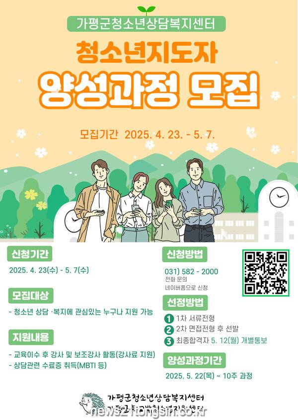 ▲ 사진=가평군가평군청소년상담복지센터가 청소년을 대상으로 한 소통 및 지도 전문 인재 양성을 위해 ‘청소년지도자 양성과정’ 참가자를 모집한다. 접수 기간은 4월 23일부터 5월 7일까지다.