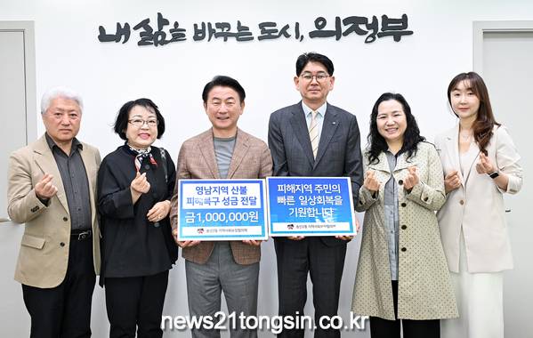의정부시 송산2동주민센터(동장 이형순)는 4월 24일 송산2동 지역사회보장협의체(위원장 김호경)가 영남지역 산불피해 복구를 위한 성금 100만 원을 전달했다고 밝혔다.