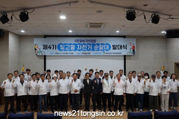 광주광역시자치경찰위원회는 24일 시청 무등홀에서 ‘제4기 빛고을 자전거 순찰대’ 위촉식을 갖고, 공식 출범했다.