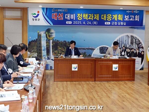 장흥군은 대선 일자가 확정됨에 따라 24일, 김성 장흥군수 주재로 대선 대비 정책과제 대응 계획 보고회를 개최하였다.
