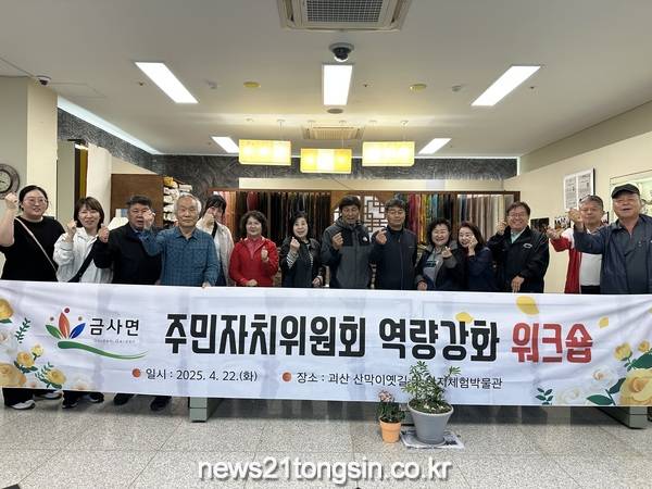 금사면(면장 박거수)에서는 지난 4월 22일 금사면 주민자치위원회를 대상으로 충북 괴산군에서 역량강화를 위한 워크숍을 실시하여 주민자치 역량 제고에 나섰다. 이번 워크숍은 주민자치위원회의 소통과 협력 강화를 위한 현장 중심 체험 교육으로 구성되었다.