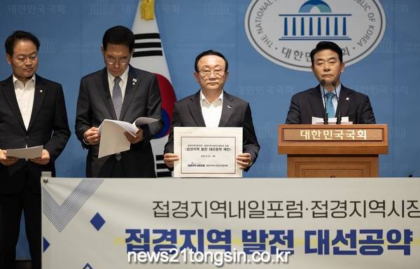 국회연구단체인 ‘접경지역 내일포럼’과 ‘접경지역시장군수협의회’는 이날 기자회견을 열어 접경지역 발전을 위해 5대 분야 22개 공통과제를 차기 대통령 후보들에게 공식적으로 제안했다.