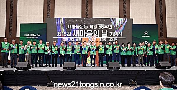 이철우 경상북도지사는 축사를 통해 “‘잘 살아보세’구호로 시작한 새마을운동이 제창 55주년을 맞았다. 특히 산불 재난에서 보여준 새마을 봉사 정신 때문에 경북은 위기를 빠르게 극복하고 있다”고 말했다.