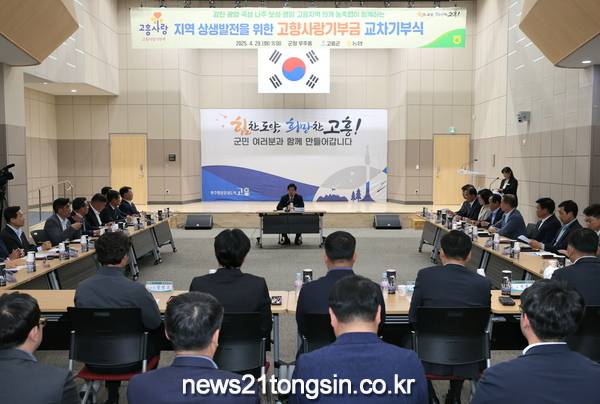 고흥군(군수 공영민)은 29일 군청 우주홀에서 전남 7개 지역의 농협중앙회 시군 지부장과 17개 농축협 조합장, 임직원 등 50여 명이 참석한 가운데 ‘고향사랑기부금 교차 기부식’을 가졌다고 밝혔다.