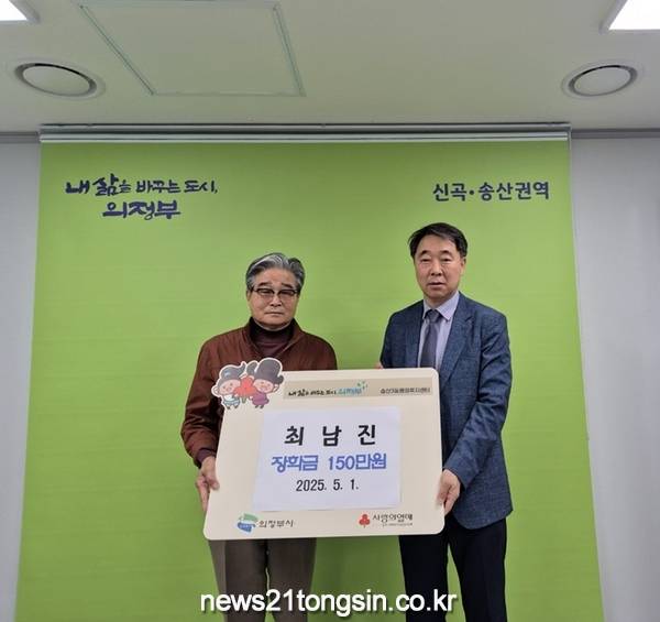 ▲ 사진=의정부시의정부시 송산3동행정복지센터(권역국장 이영재)는 5월 1일 최남진 송산1동 주민자치회 부회장이 송산권역 취약계층 학생들을 위한 장학금 150만 원을 기탁했다고 밝혔다.