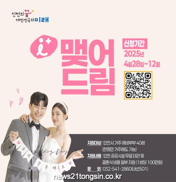 인천시는 이번 사업을 저출생 문제에 대한 실효적인 대응책으로 보고 있다. 결혼을 망설이게 하는 주된 이유 중 하나인 경제적 부담을 덜어, 결혼을 ‘망설임’이 아닌 ‘선택’으로 만들겠다는 취지다. 신청은 인천시청 누리집과 계양구가족센터 누리집에 안내된 QR코드를 통해 간편하게 할 수 있다.