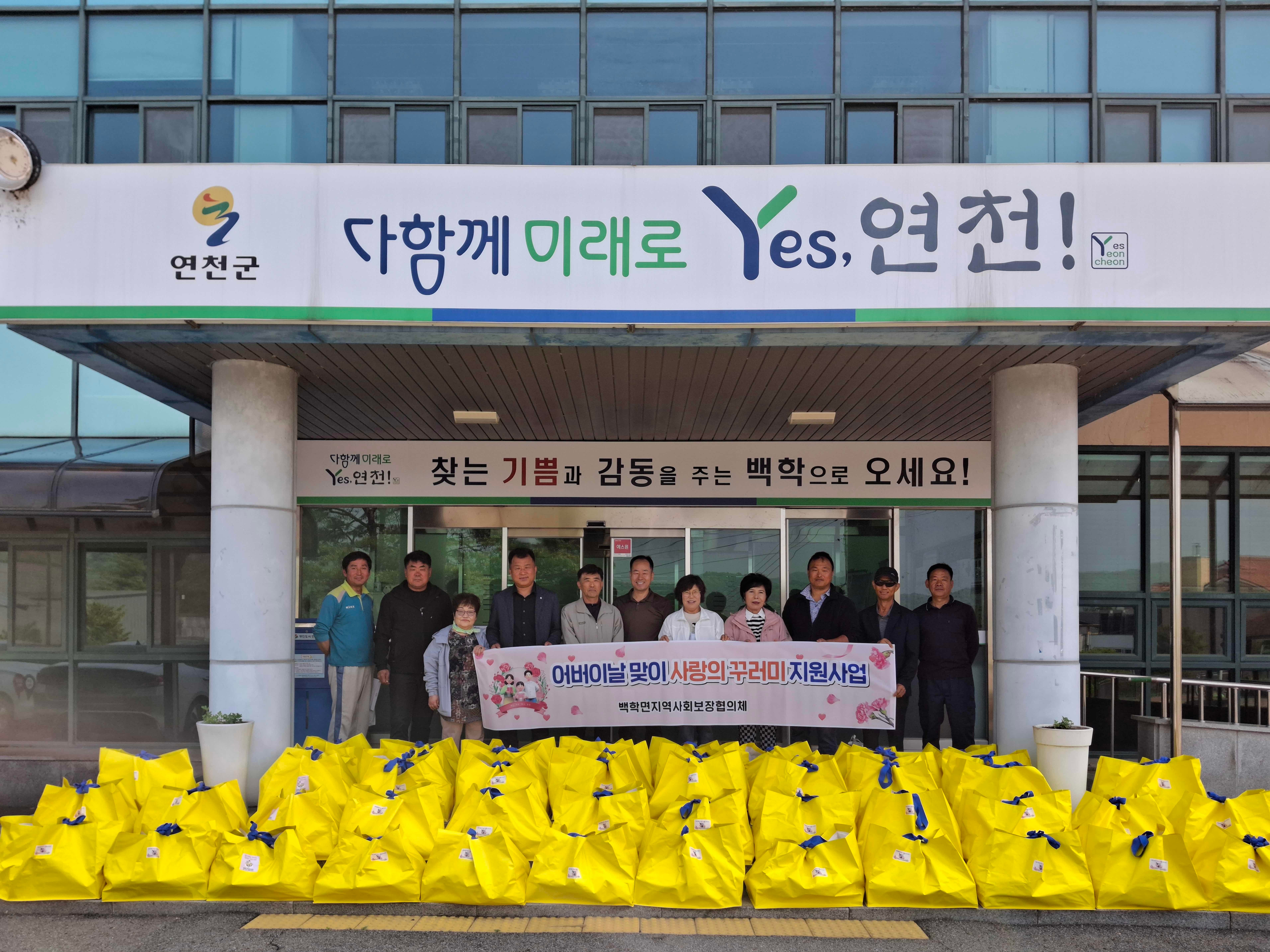 ▲ 사진=연천군연천군 백학면지역사회보장협의체(민간위원장 김종환)는 12일 어버이날을 맞아 관내 취약계층 어르신 50가구에 ‘어버이날 사랑더하기 꾸러미’를 전달했다.