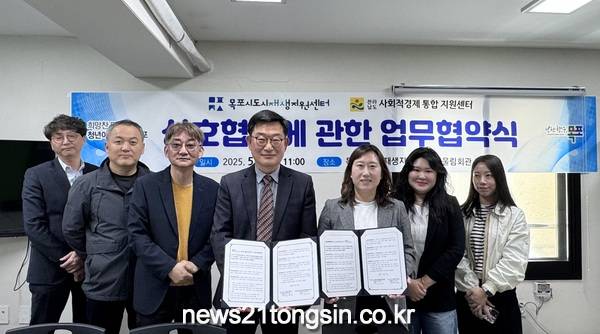 [뉴스21통신 박민창기자] 목포시도시재생지원센터와 전남사회적경제통합지원센터가 8일 업무협약(MOU)을 체결하고 지속가능한 도시재생을 위한 협력에 나섰다.