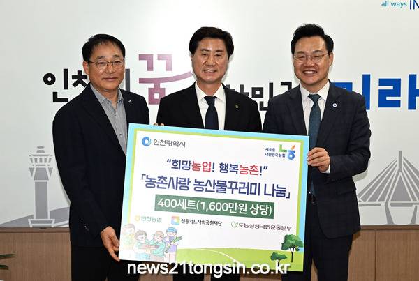 기부된 농산물 꾸러미는 총 400세트(1,600만 원 상당)로, 쌀(1kg), 감자(900g), 고구마(800g) 등 총 11개 품목으로 구성돼 있으며, 해당 꾸러미는 인천광역시기부식품등지원센터를 통해 지역 내 저소득층과 사회복지시설에 전달될 예정이다.