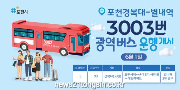 ▲ 사진=포천시포천시(시장 백영현)는 오는 6월 1일부터 광역버스 신규 노선인 3003번(경복대학교–별내역) 노선을 정식 운행한다.