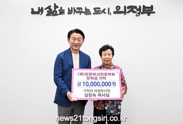 의정부시(시장 김동근)는 5월 15일 심정숙(89세) 씨가 의정부시민장학회에 장학금 1천만 원을 기탁했다고 밝혔다.