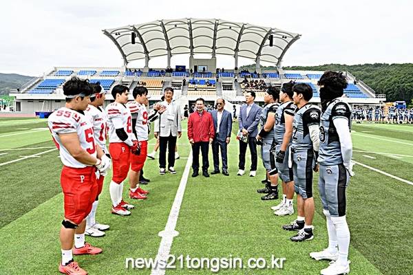 지난 18일, 사단법인 대한미식축구협회(KAFA) 사회인리그인 ‘2025 한세실업배 KNFL’와 지난해 12월 14일 결승전인 ‘광개토볼’이 군위종합운동장에서 개막식을 갖고 대장정에 돌입했다.