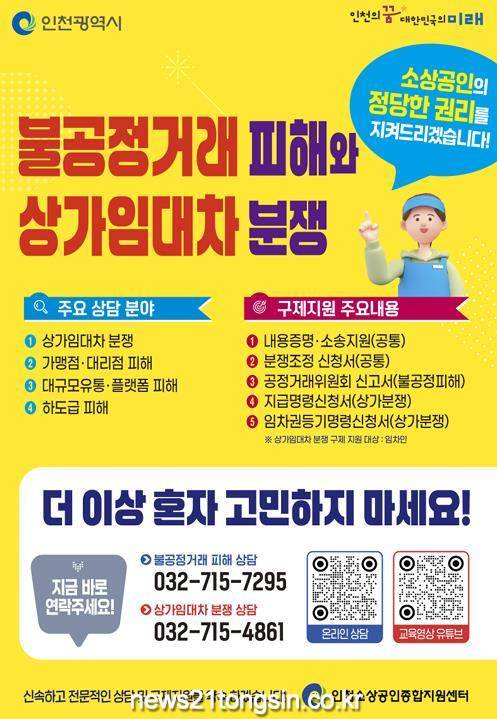 인천시는 단순 상담에 그치지 않고, 피해를 입은 소상공인이 실질적으로 문제를 해결할 수 있도록 다양한 맞춤형 지원도 병행하고 있다. 주요 지원 내용으로는 내용증명 및 분쟁조정 신청서 작성, 공정거래위원회 신고 지원, 소송 비용 일부 지원(자부담 발생) 등이다.