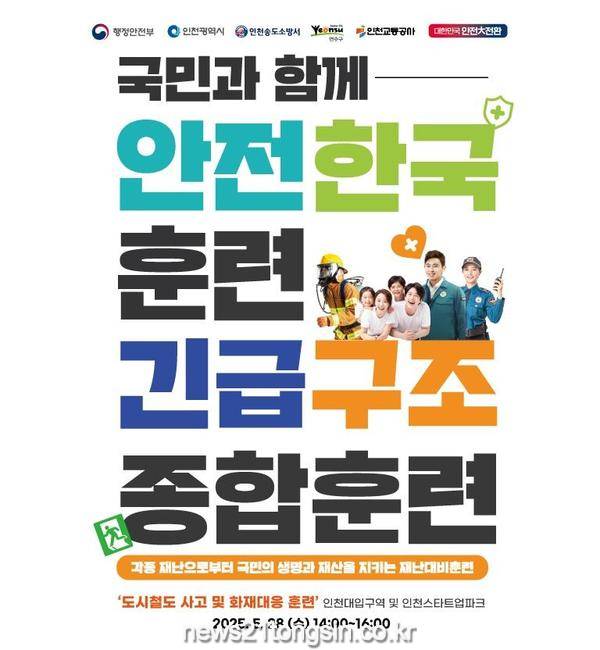 인천광역시(시장 유정복)는 대규모 재난 발생 시 초기 대응 역량을 강화하고 각 기관의 역할을 점검하기 위한 ‘재난대응 안전한국훈련’을 오는 5월 28일 실시한다고 밝혔다.