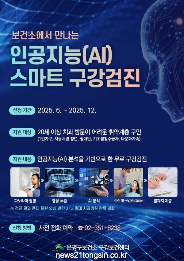 서울 은평구(구청장 김미경)는 보건소에서 인공지능(AI) 분석을 기반으로 한 ‘스마트 구강검진 관리 시스템’을 내달부터 본격 운영하고 22일부터 사전 전화 접수한다고 밝혔다.