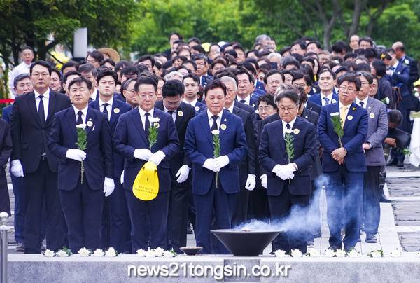 이날 추도식은 ‘민주주의 최후의 보루는 깨어있는 시민의 조직된 힘입니다’라는 슬로건으로 엄수됐다. 우원식 국회의장 추도사, 시민합창단의 추모 공연, 차성수 이사장 인사말 순으로 진행됐다.