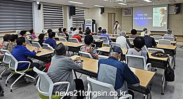지역 주민 50여 명이 참석한 가운데 허정애 경북대 영어영문학과 명예교수가 ‘기억과 사랑’을 주제로 노년의 사랑과 삶을 인문학적으로 고찰하는 시간을 가졌다.