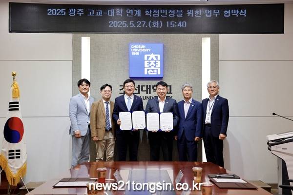 광주시교육청(교육감 이정선)은 27일 조선대학교 본관 청출어룸에서 조선대학교와 ‘고교-대학 연계 학점 인정을 위한 업무협약’을 체결했다.