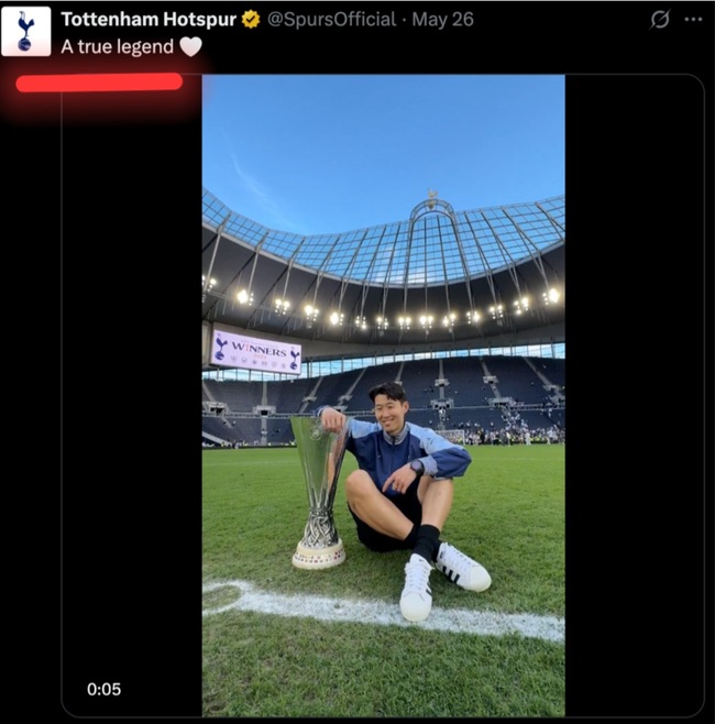 전설들의 환호와 홈 구장 팬들의 응원 속에 동료들과 함께 경기장을 돌며 팬들과 감격의 순간을 함께했다. 이후 토트넘은 공식 채널에 손흥민이 트로피를 안고 있는 사진을 게시하며, 그를 “유럽 트로피를 들어 올린 캡틴들의 엘리트 그룹에 합류했다”고 밝혔다. 그리고 “손흥민은 토트넘의 진정한 레전드”라고 공식 선언했다. 또 멀러리, 페리먼, 손흥민 세 주장이 나란히 트로피를 든 이미지를 함께 게시하며 손흥민이 토트넘 역사에 길이 남을 존재임을 재차 강조했다.