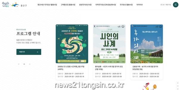 광산구는 국가유산 활용 프로그램을 한눈에 보고 이용자가 쉽게 정보를 찾을 수 있도록 디자인과 메뉴 구조 등을 전면 개편했다.