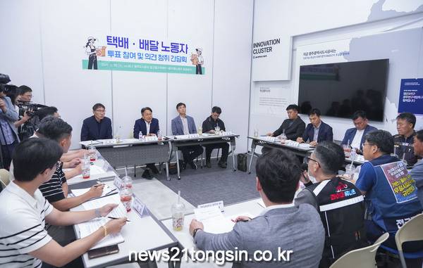 광주광역시(시장 강기정)는 28일 이동노동자 공공쉼터 중 한 곳인 광주도시공사 빛고을고객센터에서 ‘택배·배달 노동자들의 투표권 보장과 노동환경 개선을 위한 현장간담회’를 개최했다.