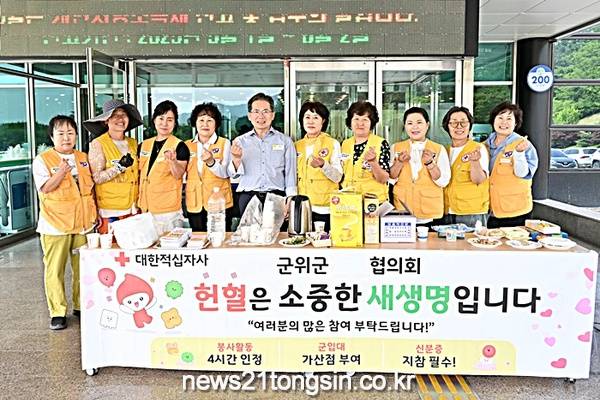 대한적십자사봉사회 군위군협의회(회장 김남수)는 지난 28일 군위군청 전정에서 진행하는 ‘2025년 2분기 생명나눔 헌혈 운동’ 봉사를 진행했다.