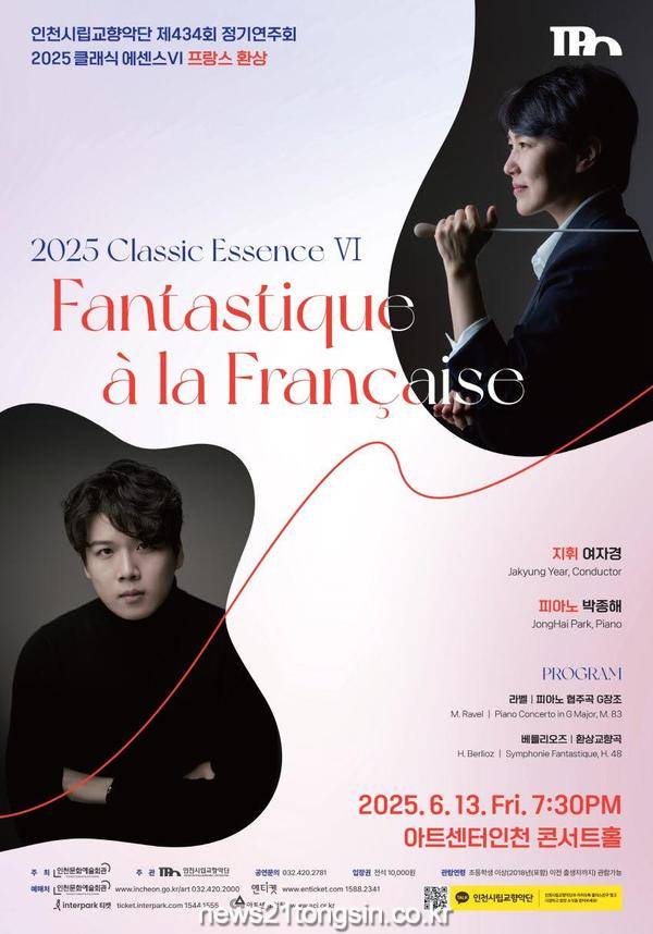 프랑스 음악 특유의 우아함과 몽환적인 분위기를 한자리에서 경험할 수 있는 소중한 기회이자, 깊이 있는 프로그램 구성과 뛰어난 출연진의 해석이 관객들에게 잊지 못할 감동을 전할 <2025 클래식 에센스 Ⅵ : 프랑스 환상>은 전석 1만 원에 관람할 수 있다. 인천문화예술회관과 아트센터인천 누리집, 엔티켓 및 인터파크 티켓에서 예약이 가능하다.