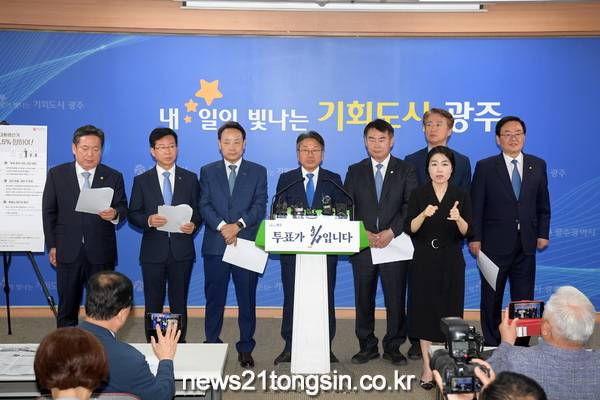 앞서 광주시와 교육청, 자치구는 지난달 12일 시민의 투표 참여를 독려하기 위한 공동 기자회견을 열고 ‘광주 역대 최고 투표율 92.5% 향한 적극행정…광주시-교육청-자치구, 6대 실천 약속’을 한 바 있다.