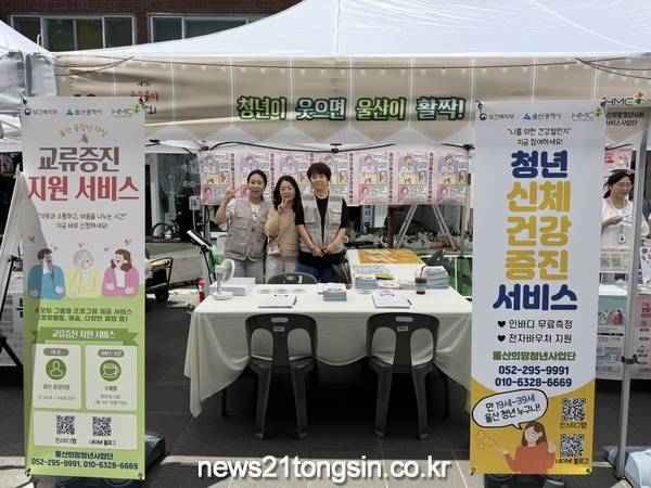 (뉴스21통신/우정석기자) = 울산희망청년사업단(단장 김수진)은 지난 6월 7일 울산 중구 문화의거리 일원에서 열린 제7회 중구복지박람회에 참가해, 보건복지부 지원사업인 청년신체건강증진서비스 및 교류증진지원서비스를 울산시민들에게 홍보했다.