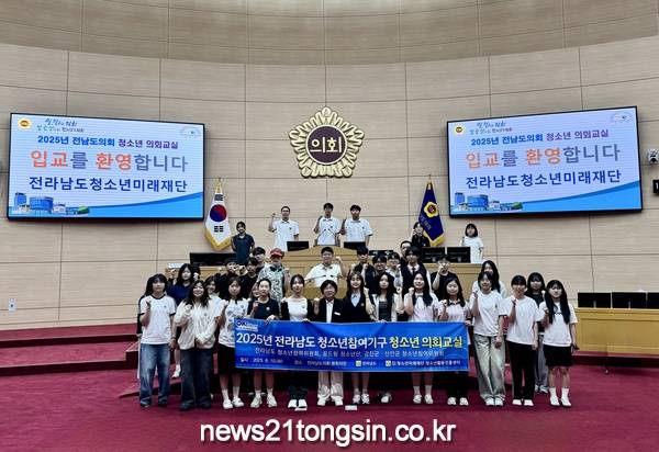 [뉴스21통신 박민창기자] (재)전라남도청소년미래재단은 6월 10일 전라남도의회 본회의장에서 ‘청소년 의회교실’을 성공적으로 마무리하며, 미래 전남을 이끌 청소년들의 민주시민 역량 강화를 이뤘다.