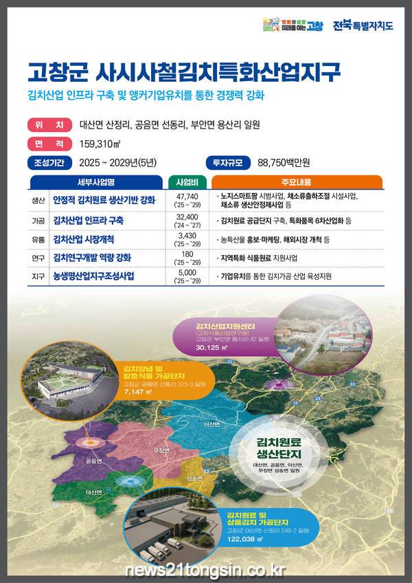 전북특별자치도 고창군 ‘사시사철 김치특화지구’가 전북자치도의 농생명산업지구로 최종 선정돼 속도감 있는 사업추진이 기대된다.