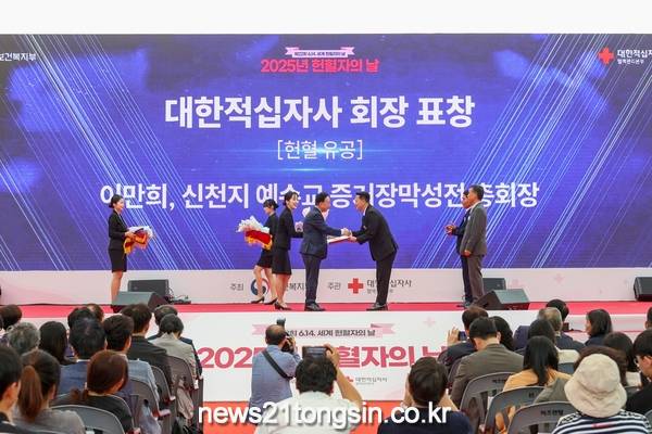 신천지예수교 증거장막성전(이하 신천지예수교회) 이만희 총회장이 지난 13일 ‘2025 헌혈자의 날’ 기념행사에서 대한적십자사 회장 표창을 수상했다.