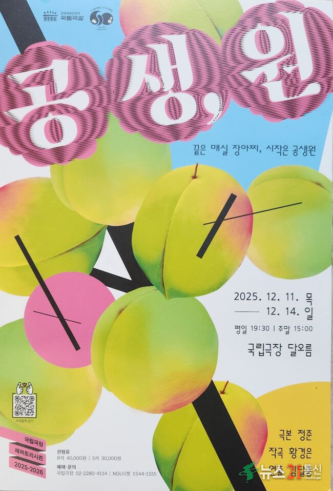 국립극장이 2025-2026 레퍼토리 시즌의 문을 여는 화재작 * 〈공생원 〉*을 오는 12월 11일(목)부터 12월 14일(일)까지 달오름극장에서 선보인다. 극본 정준, 작곡 황경은, 연출 김달중이 힘을 모아 완성한 이번 작품은 일상의 음식인 '매실 장아찌'를 모티브로 삼아, 우리가 함께 살아가는 삶의 방식과 세대 간 연대의 의미를 셈세한 시선으로...