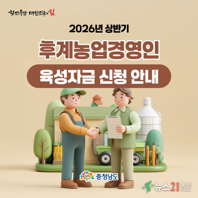 충남도는 ‘2026년 상반기 후계농업경영인 육성자금’ 신청을 접수한다고 19일 밝혔다.내년 상반기 충남 배정액은 354억 5000만 원으로, 올해 청년농업인영농정착지원사업과 후계농업경영인육성사업 선정자가 신청할 수 있다.세대당 대출 한도인 5억 원에서 이미 대출된 금액을 차감하고 남은 대출 가능액 내 신청 가능하다.자금 배정 신...
