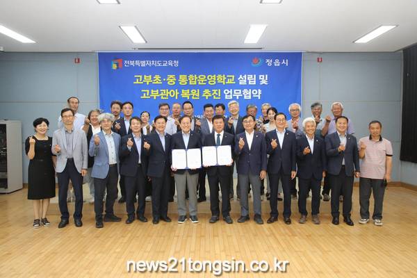시와 도 교육청은 18일 고부면 동학울림센터에서 ‘고부초·중 통합운영학교 설립 및 고부관아 복원사업’을 위한 업무협약(MOU)을 체결했다.